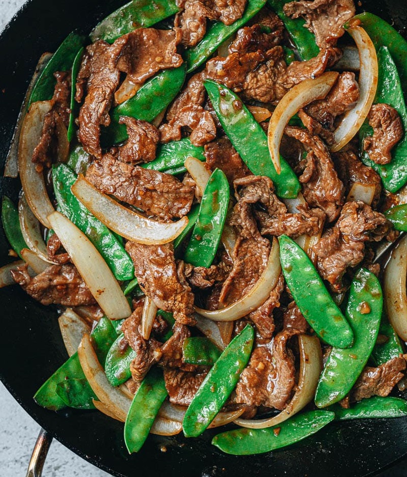 Stir the sauce again to redissolve the cornstarch completely and pour it into the pan. Add the beef back to the pan.