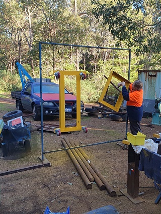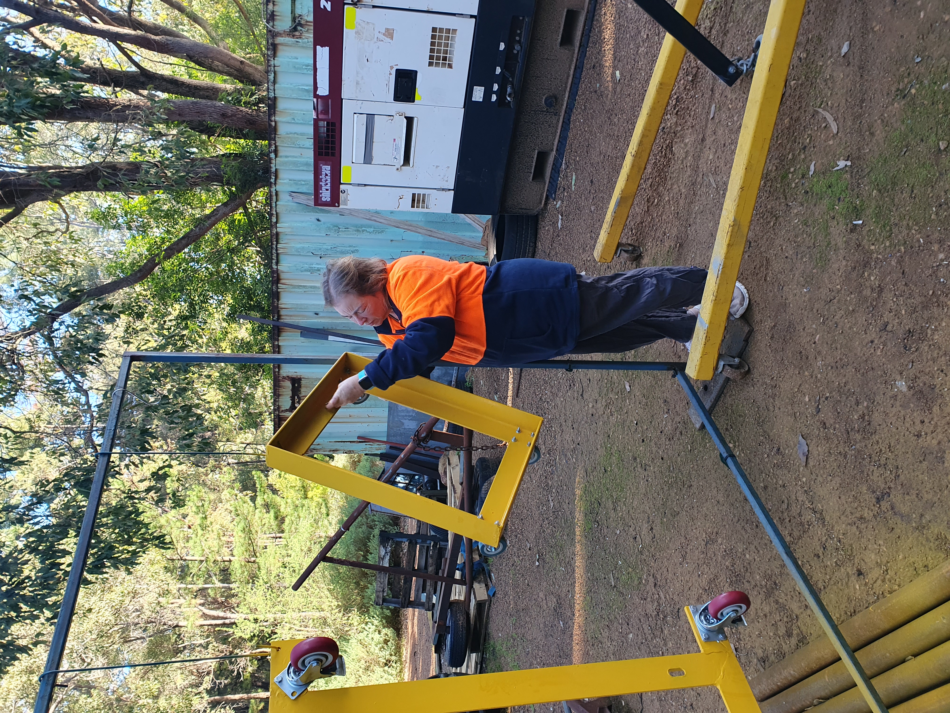 Made from angle purchased in an auction and some flat steel, we had left over from another project, after painting them, we added castor wheels.