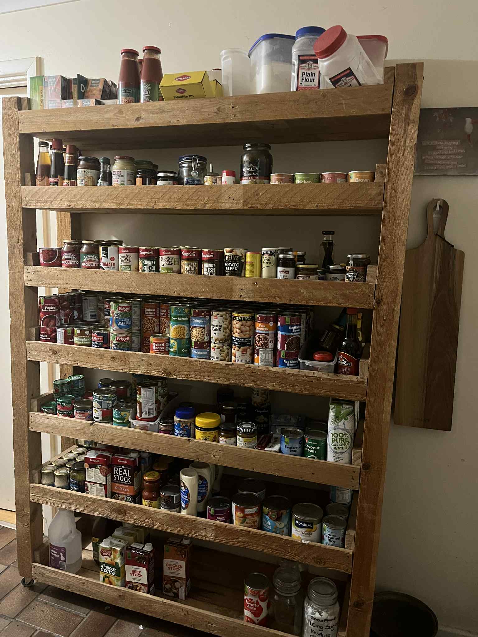 We built a second one to accommodate plastic storage tubs for bulk items and our preserves.