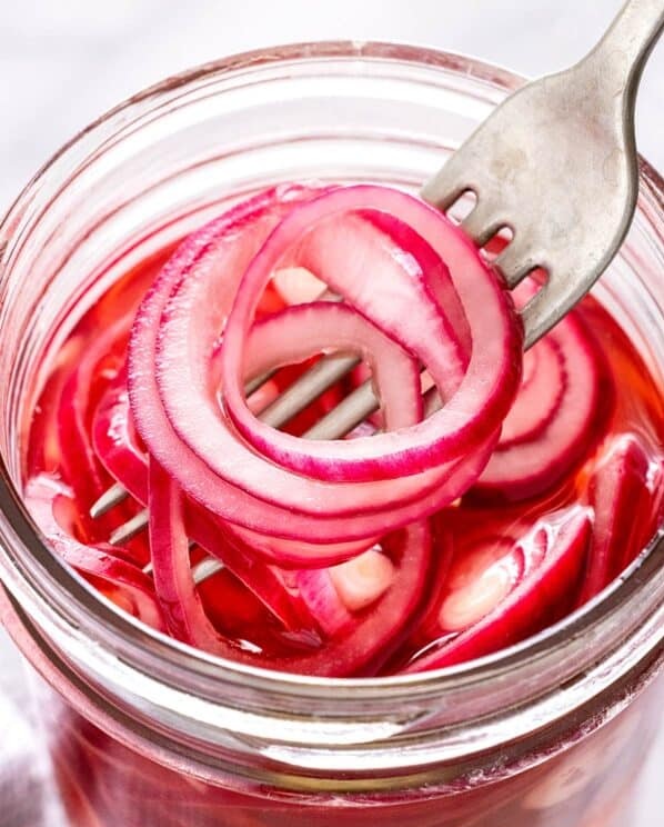 Rinse the onions well, drain in a colander, shaking off any water.