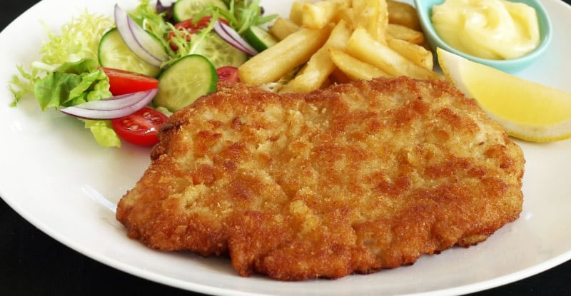 the breadcrumbs are golden and crispy. Repeat Step 3 for the other schnitzels.