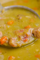 | INGREDIENTS 1 Ham Hock 250g Yellow Split Peas 250g Green Split Peas 2-4L Stock 2 large Carrots Water to soak peas INSTRUCTIONS Rinse split peas well Soak peas overnight in water allow approx 5cm above the peas Boil ham hock in the stock for 60minutes, remove allow to cool. Cut meat off hoc and dice. Add carrot, peas and diced ham to stock, along with hock. Boil until until carrots are soft Remove hock bone, puree if desired. Serve with toast or crunchy bread |